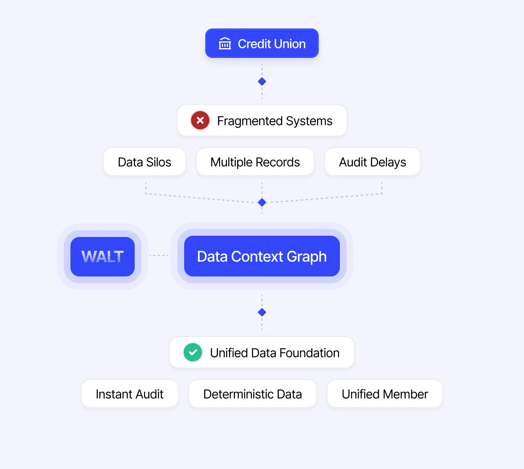 One foundation for analytics, compliance, fraud detection, and member insights. Meaning stabilized. Everything else automated.